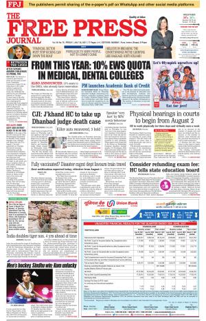 Free press journal is english epaper of india region asia.